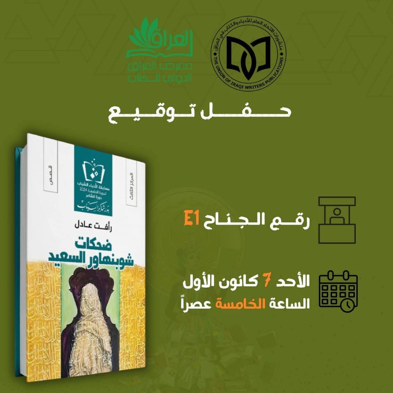 العراق : توقيع ضحكات شوبنهاور السعيد لرأفت عادل في معرض العراق للكتاب